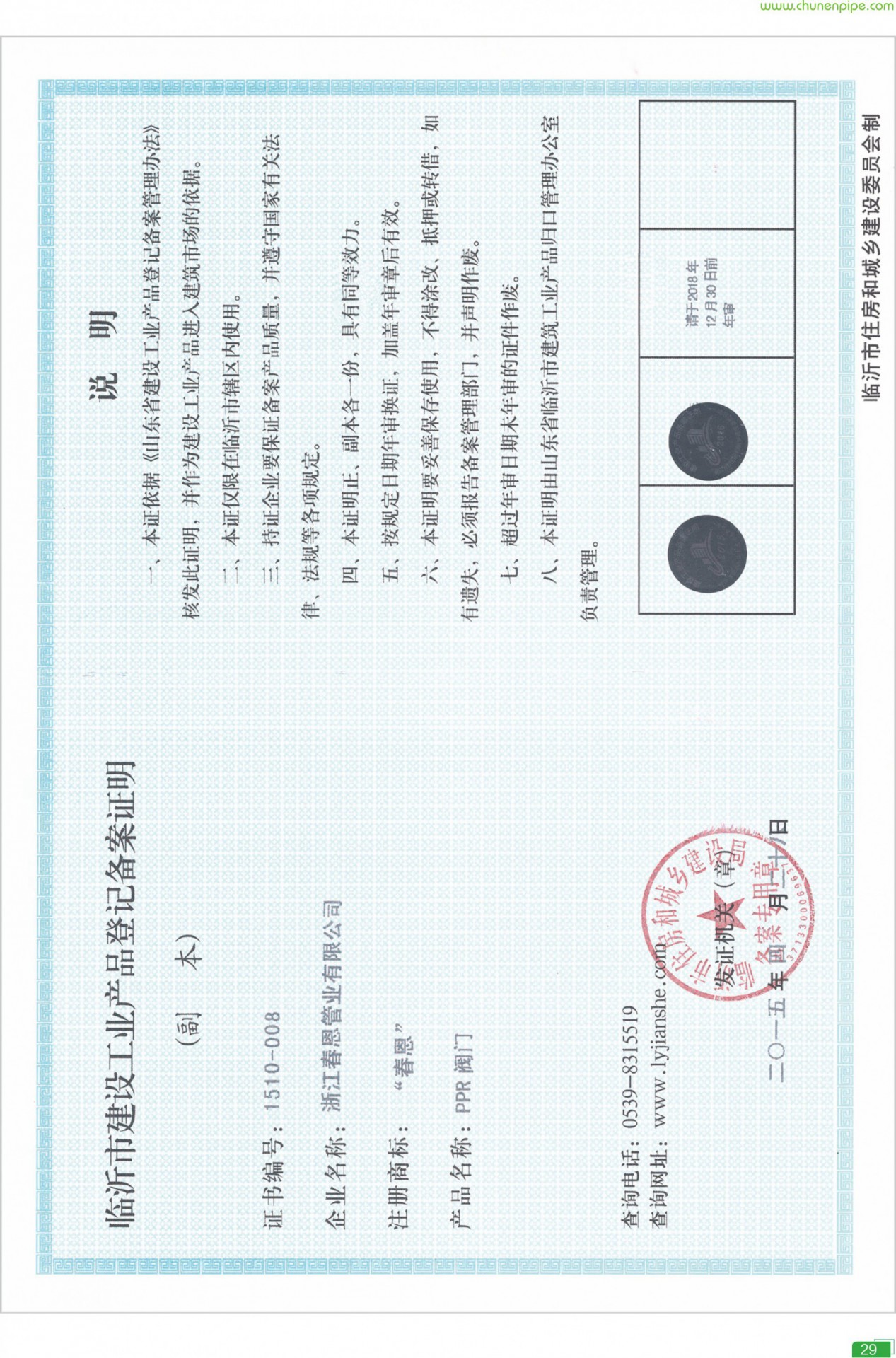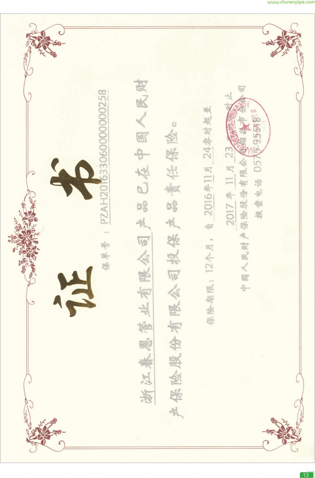 - “春恩”牌系列產(chǎn)品在市場享有良好的聲譽,銷售業(yè)績連年翻番,被中國中輕產(chǎn)品質(zhì)量保障中心評為2012年度“中國著名品牌”。中國人民保險公司(PICC)為企業(yè)提供產(chǎn)品責(zé)任保險。浙江春恩管業(yè)有限公司營銷網(wǎng)絡(luò)健全,銷售渠道暢通。已在全國三十多個省、市設(shè)立辦事機構(gòu),為廣大用戶提供及時便捷的售前、售中及售后服務(wù)。