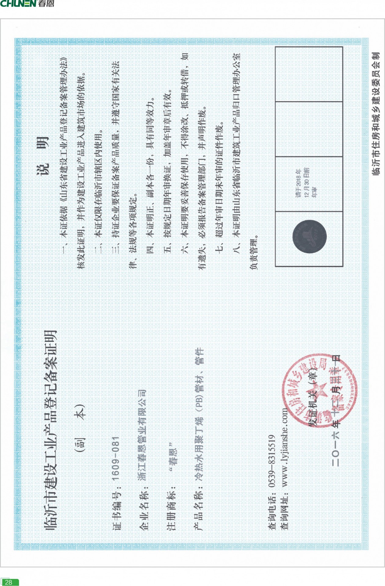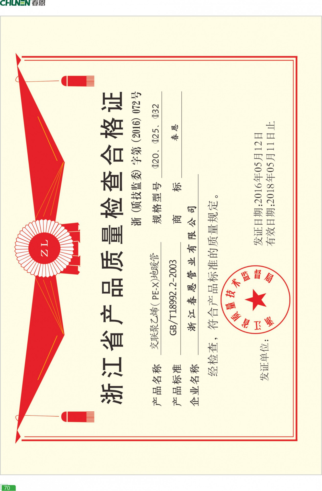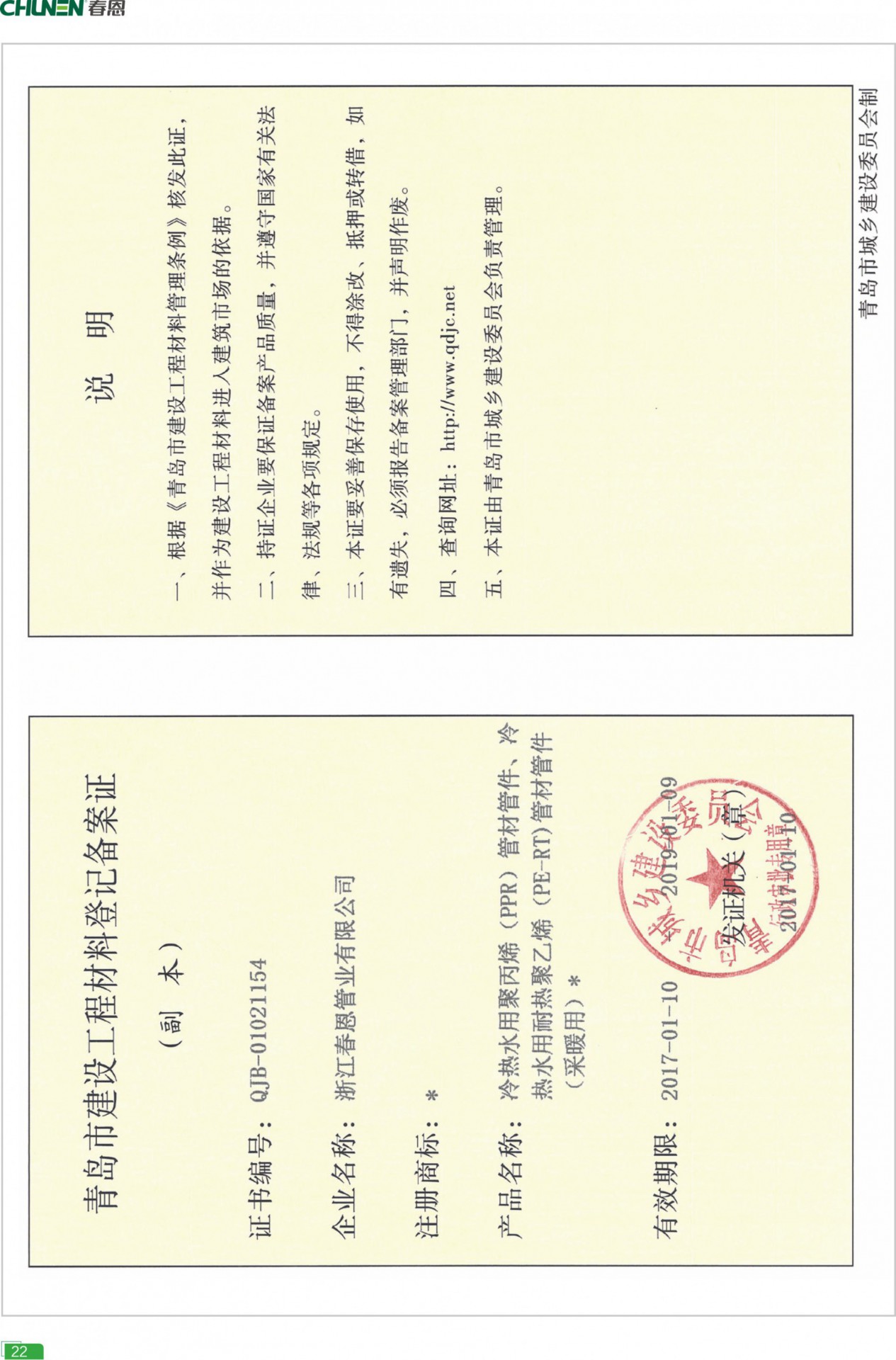 - 產(chǎn)品涵蓋PP-R給水/抗菌/鋁塑管道、PE-RT/PEX地暖管道、PVC-U電工/排水管道、閥門、分水器等多個品類。春恩管道自建精益品質(zhì)管控體系,由專業(yè)團隊負(fù)責(zé),通過近百項嚴(yán)苛標(biāo)準(zhǔn),嚴(yán)格監(jiān)管供應(yīng)鏈、生產(chǎn)流程、技術(shù)工藝、品質(zhì)檢測四大系統(tǒng),保證每一項生產(chǎn)環(huán)節(jié)的精細(xì)化、標(biāo)準(zhǔn)化、高品質(zhì)化。